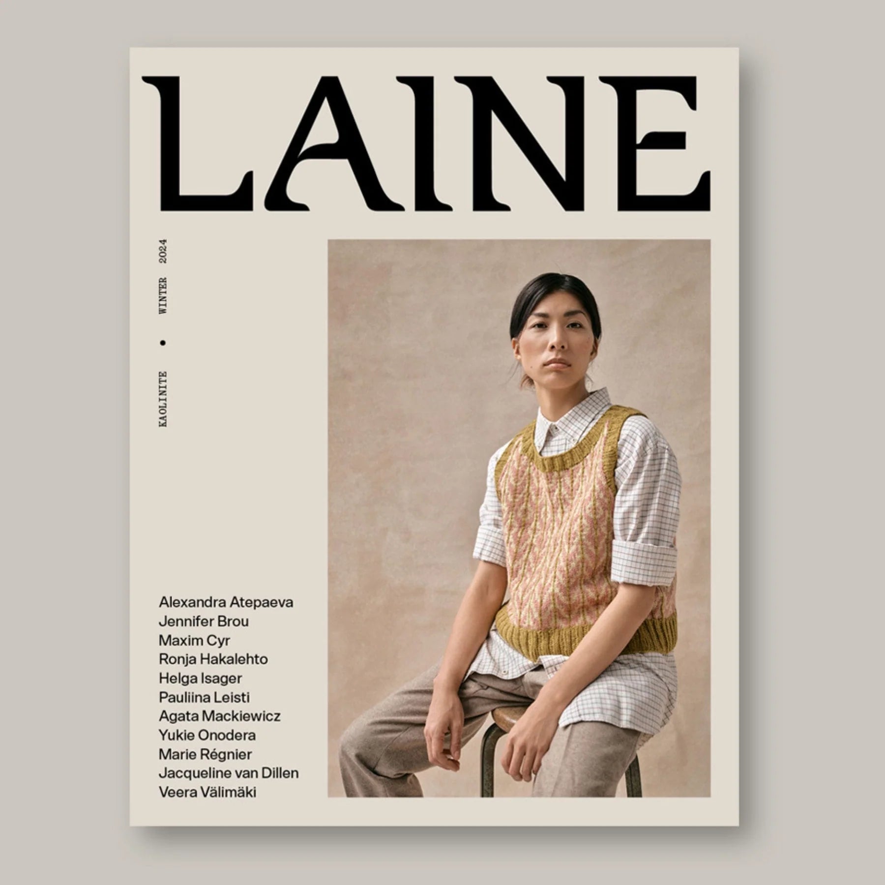 The Laine 19 Winter 2023 Issue, named Kaolinite, celebrates the meditative nature of crafts. Kaolinite is a soft, white, natural occurring clay mineral. The beautiful, serene photos in this issue were taken in a ceramics studio, and the patterns offer a relaxing break from the everyday.