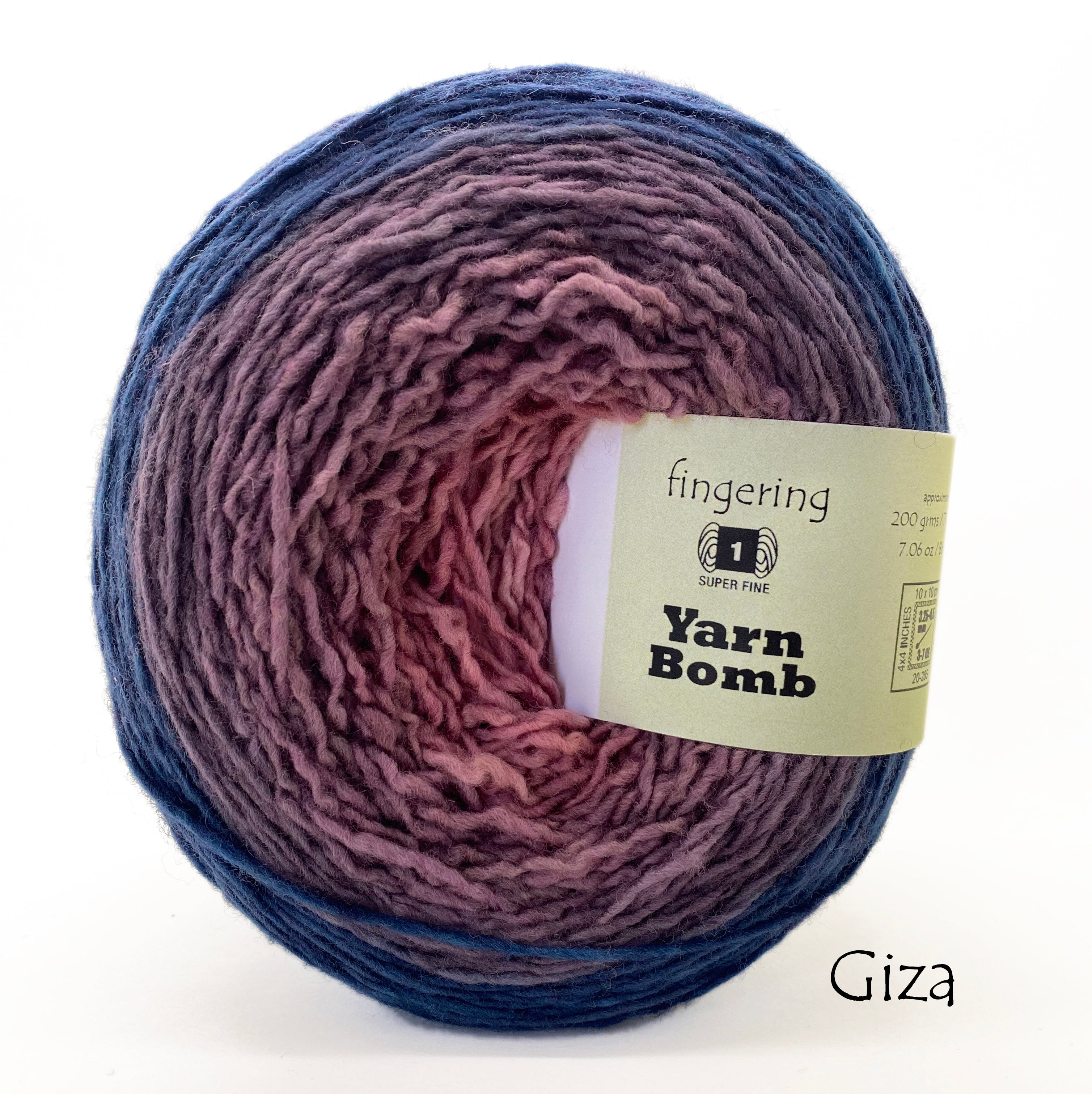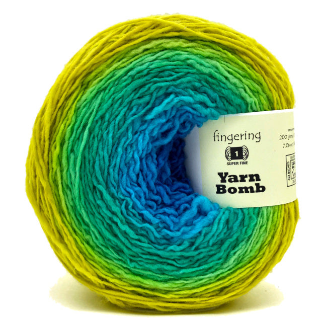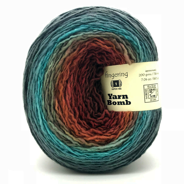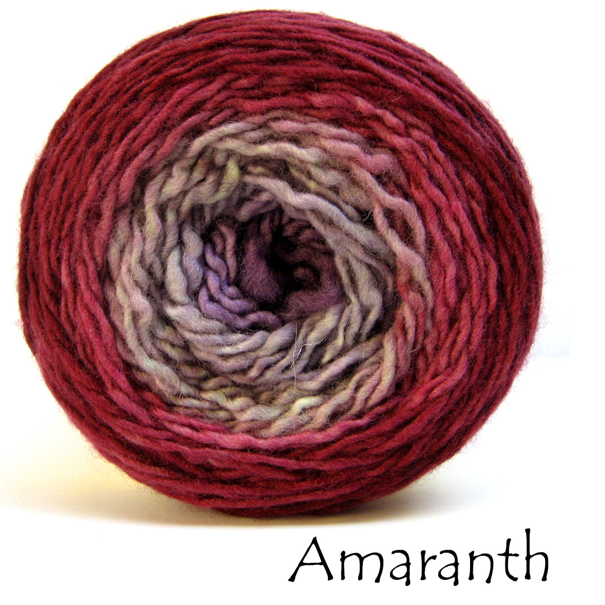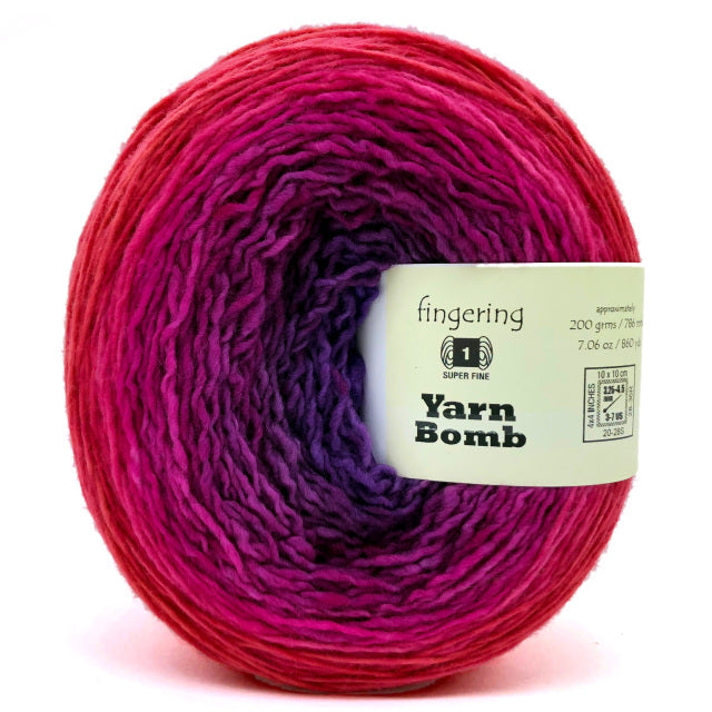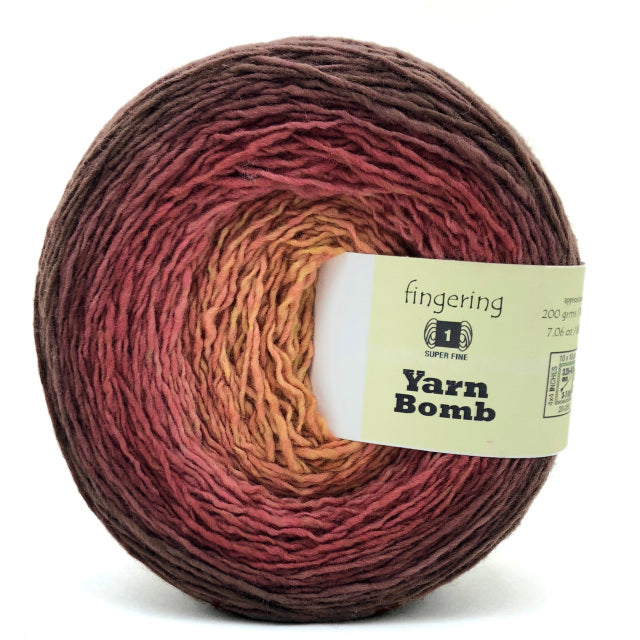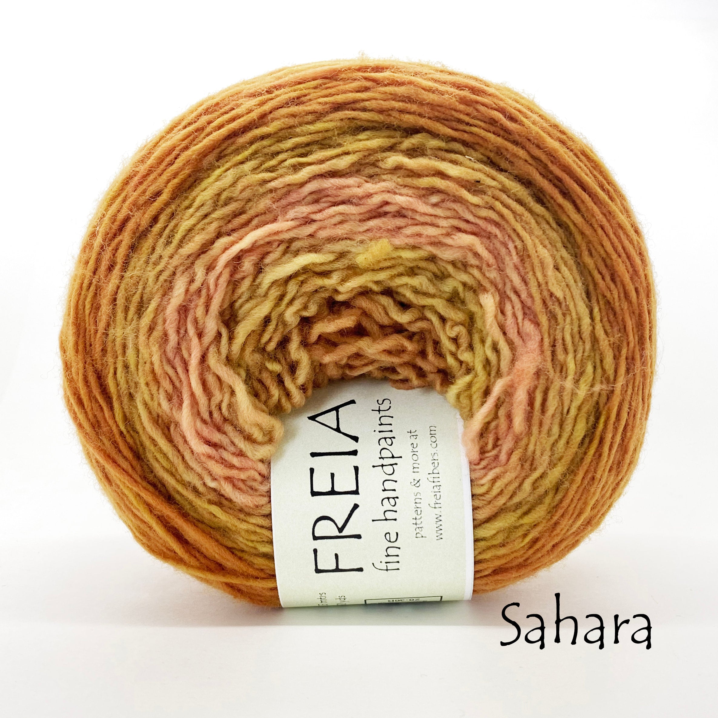 Freia Fibers hand-dyes their gradient yarn with inventive color combinations. The fibers are soft and these shawl balls, are weight 1, enabling a lot of time for color interplay.