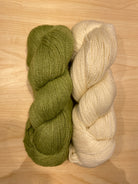 Our kit uses Juniper Moon Farm Moonshine Fine in Matcha Tea 1019 and Moonbeam 1003.