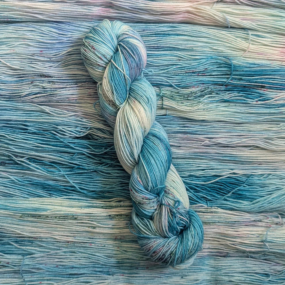 This is the workhorse yarn. It can be used for baby items, socks, shawls, you name it. It's soft enough to envelope your feet in knitting socks, but strong enough to walk around your house without shoes on. Also, it's machine washable, so no fears of shrinking your work.