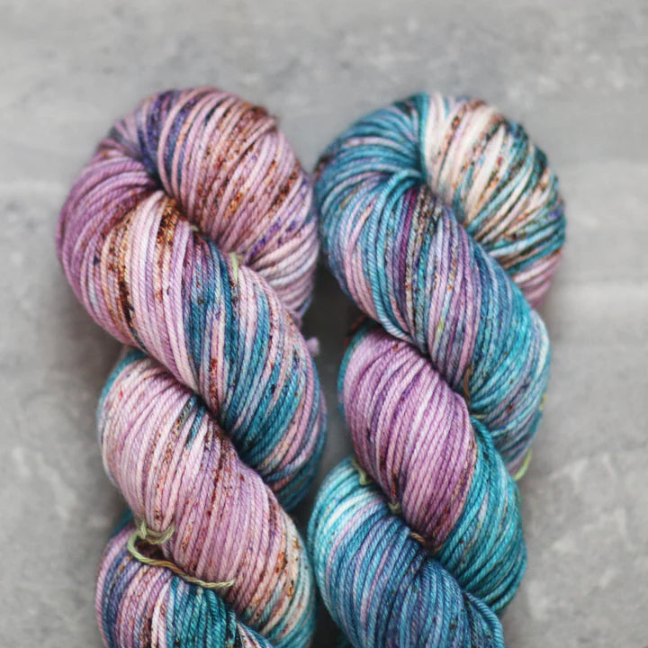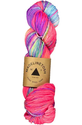 Mad Tosh, as she goes by, has created stimulating colors for the most creative socks around. And the best color titles....such as "Love the Yarn You're With!" The fine yarn is made of 100% superwash merino wool. Wash in cold water and hang to dry. This yarn comes in skeins of 395 yds/361m.