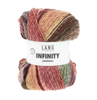 INFINITY is a single ply yarn made with extrafine merino wool, notable for a unique colour design. Each ball is made in such a way that there is no pattern repeat - the same colours appear again and again, but at irregular intervals, in a different sequence and with varying intensity.