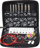 This set features lace tips of surgical stainless steel with memory free cables. Needle sizes US 9 - US 15. It comes with a fabric zippered case containing 1 cable connector, 2 end stoppers, stitch markers, a needle gauge, and 2 keys.