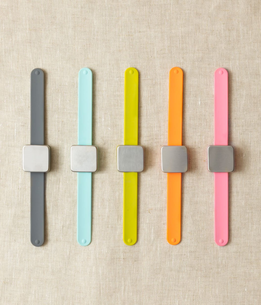 The silicone slap bracelet fits any size wrist and sports a brushed steel-plated magnet. Accessories attach to the magnet to keep what you need where you need it most.