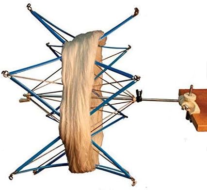 A smoothly operating metal swift with flexible covered ribs for the finest of threads featuring one hand adjustment for skeins up to 60", integral handle that permits use as a winder, adjustable table clamp permitting vertical, horizontal or angled operation.