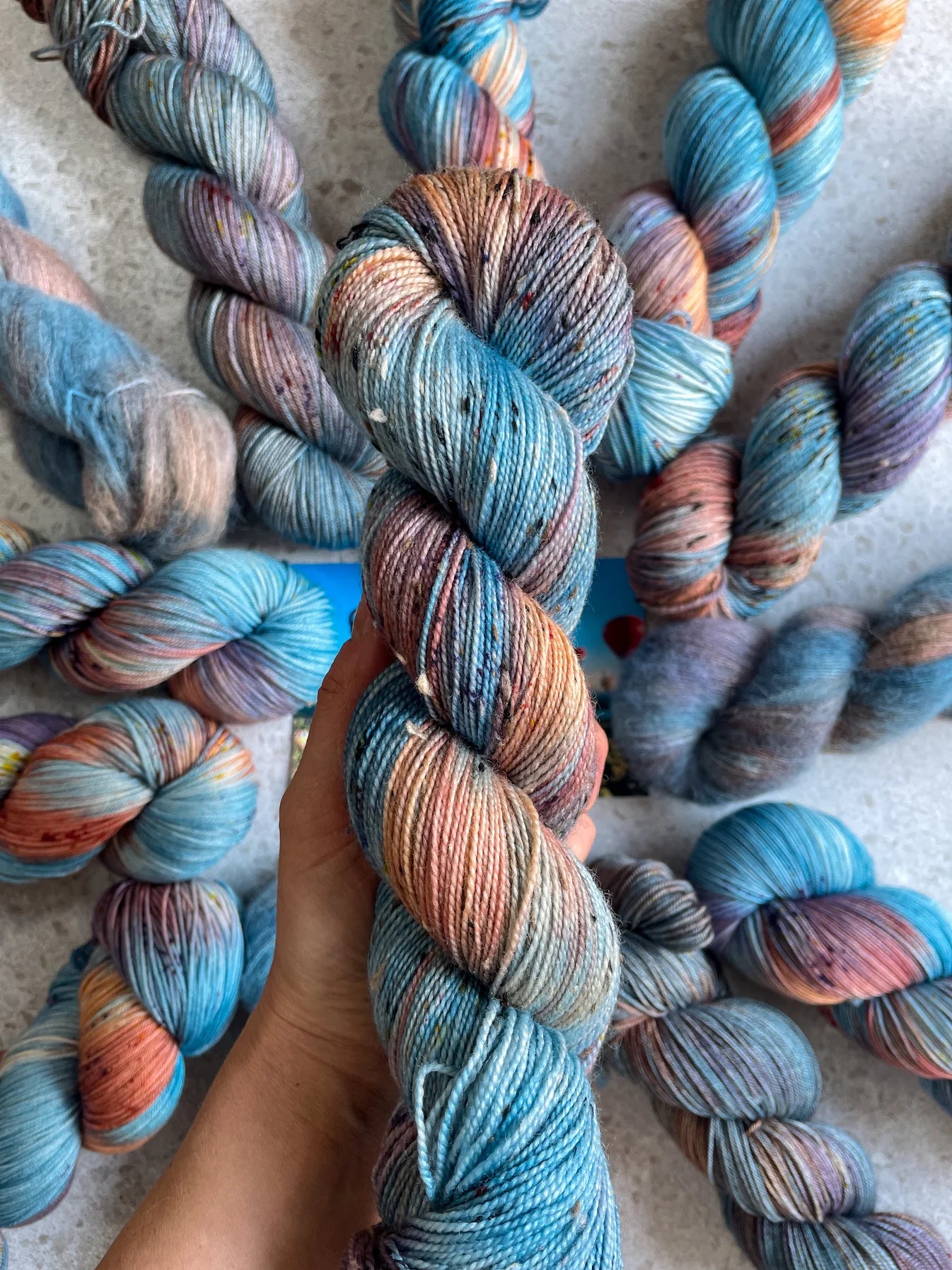Long Dog Yarn's Tweed Sock is made of 85% superwash merino wool and 15% neps. It has 400 yd per skein.