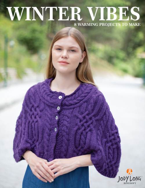 A knitting pattern book of 8 warming designs using the Jody Long yarn, Rovesoft. Patterns include: sweaters, cardigans, and a wrap.